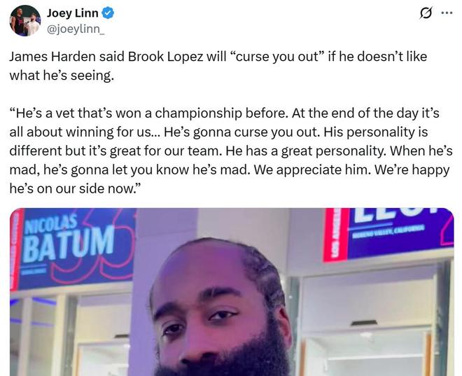 哈登盛赞洛佩斯在队内作用:他会生气还会骂人,这对球队是好事
