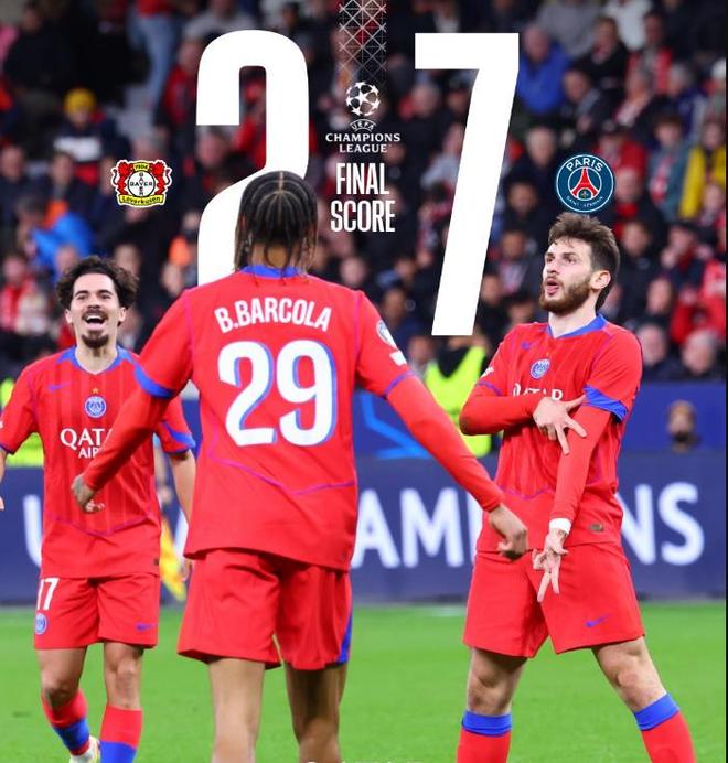 客场对德国球队打入7球,大巴黎是欧战历史上第一队
