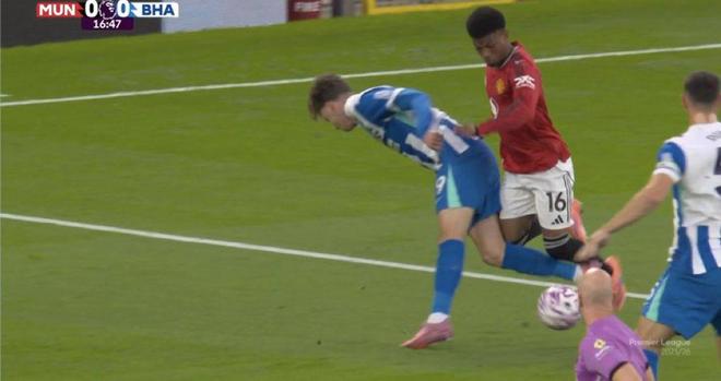 英超官方解释阿马德禁区被放倒未判点:德库耶佩先触碰到球
